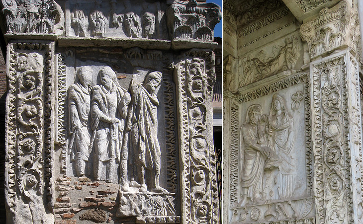 Reliefs depicting: (left) a prisoner in Dacian attire; (right) the Emperor and Iulia Domna his wife performing a religious ceremony
