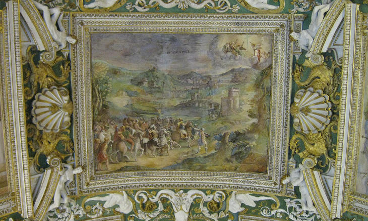 Vision of Constantine before the battle of Ponte Milvio in the ceiling of the Gallery of Maps (decoration by Girolamo Muziano for Pope Gregory XIII); today the Gallery of Maps is part of Musei Vaticani