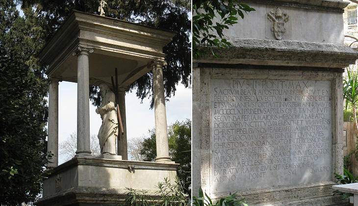 Andrew. It was erected here in 1462 by Pope Pius II to celebrate the arrival to Rome of the head of the saint from Patras in Greece, which had been conquered by the Ottomans in 1460. You may wish to know more about this topic. In 1848 a similar monument was erected to celebrate the finding of the head which had been stolen.