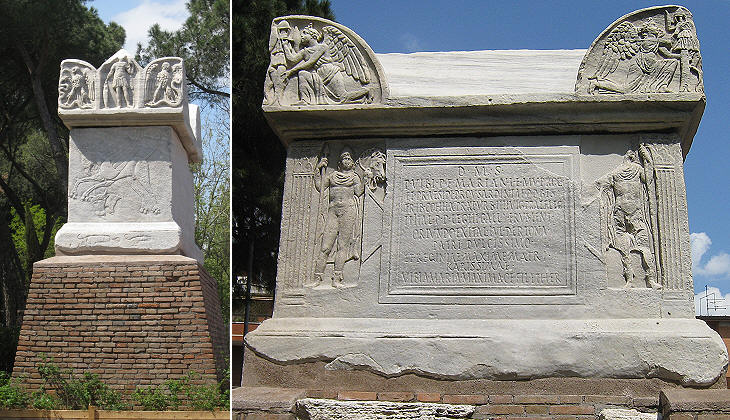The neighbourhood is known as Tomba di Nerone because in the Middle Ages a Roman sarcophagus was believed to be the tomb of Emperor Nero. Due to the association with Nero, who was regarded as a sorcerer, the monument had a bad reputation and many unfortunate events which occurred in the area were attributed to it, including the killing of a Bavarian countess travelling as a pilgrim to Rome in 1844, as reported by Charles Dickens. The sarcophagus was dedicated by Vibia Maria Maxima to her father Publius Vibius Marianus who held several minor positions in the Roman army in ca 220-240 AD; it is finely decorated with reliefs showing among other subjects, Castor and Pollux, the demigods who protected Rome.
