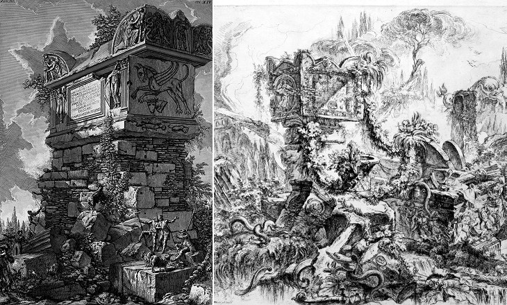 Tomba di Nerone in two very different etchings by G. B. Piranesi
