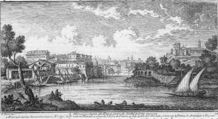 In the XVIIIth century scanty remains of the Roman docks along the Tiber were still clearly visible. Pope Pius IX promoted their excavation (an inscription in Lungotevere Testaccio celebrates this initiative). The commodities carried to Ostia and Porto from the provinces of the Empire, were moved to small ships (see a mosaic at Ostia) which were towed-up to the docks of Testaccio.