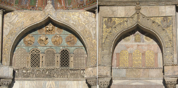 Venetian merchants often travelled to Syria, the Holy Land and Alexandria: they were impressed by the flowing lines of Islamic art; this led to designing the arches of the portico in a way which shows the links Venice had with that part of the Levant (the image in the background of this page shows the shape of another arch).