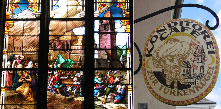 Memories of the Ottoman conquest in the parish church and at a coffee-house ("At the Turkish Cannon Ball", a sugar confection made of marzipan, honey and coffee covered with dark chocolate)