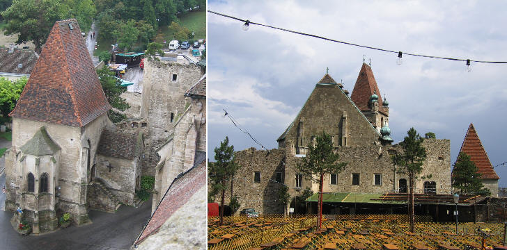 The fortifications of Perchtoldsdorf were not limited to the imposing square tower, built between 1450 and 1521, but included walls surrounding the market square and a castle, located on the top of the hill, which served as the baronial residence. Martinikapelle is a small chapel adjoining the castle: it was built between 1512 and 1520 and it shows the persistence of Gothic patterns in the countryside.