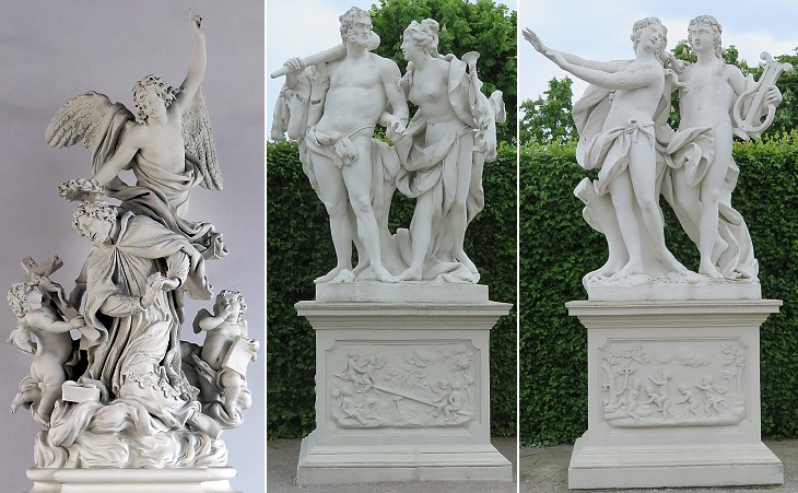 Belvedere Palace and Gardens: (left) St. John Nepomuk (1724) by Johann Jacob Schoy; (centre) Hercules and Deianira, his spouse; (right) Apollo and Daphne in the Belvedere Gardens