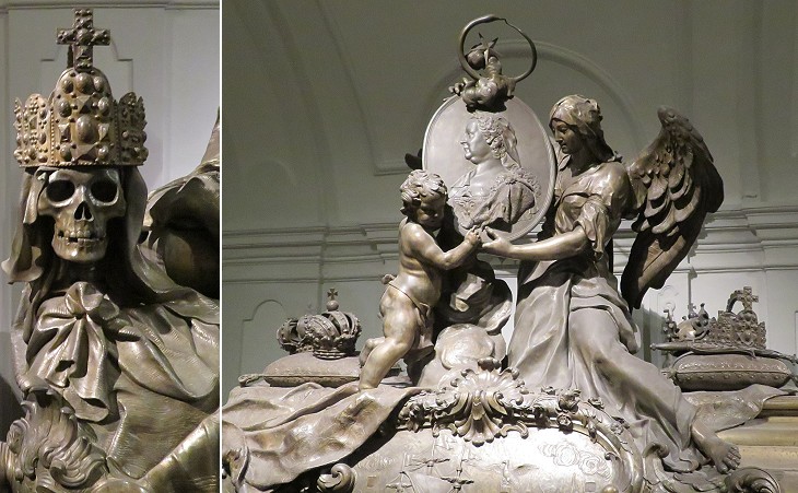 Details of the monuments to Emperor Charles VI (left) and to his wife Elisabeth Christine of Brunswick (right) by Balthasar Ferdinand Moll in