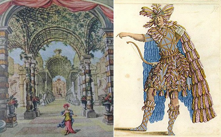 Scenery and a costume by Ludovico Burnacini (Vienna, Nationalbibliothek)
