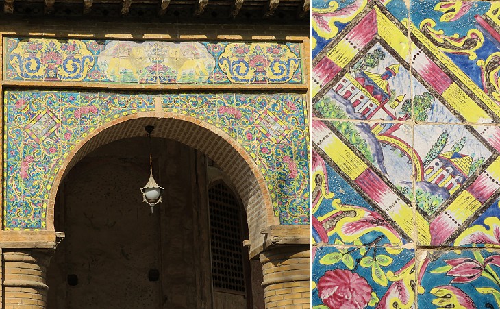 Qazvin - Chehel Sotun, the only remaining pavilion of a XVIth century Safavid palace: details of the Qajar period (XIXth century)