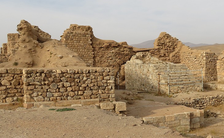 Takht-e Suleiman: podium at the northern end of the lake leading to the Sassanid temples and palaces