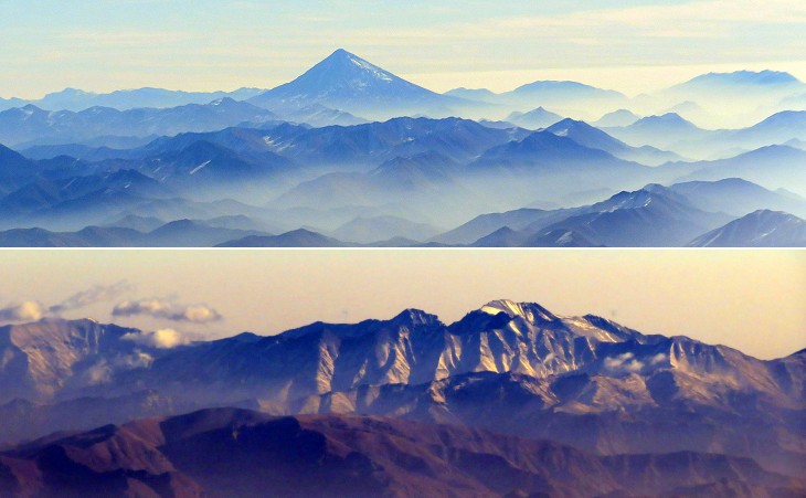 (above) Mt. Damavend (5,609 m - 18,403 ft) in the Central Elburz range from the Baku-Tehran flight; (below) Western Elburz range from the Tehran-Istanbul flight