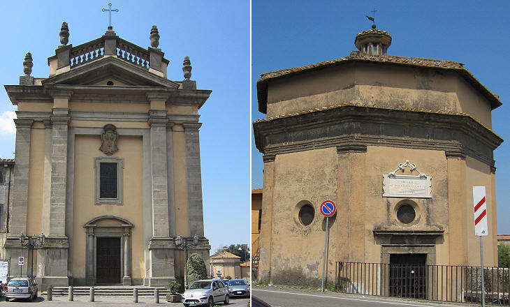 In 1576 Cardinal Gambara promoted the enlargement of Bagnaia by opening three streets departing from the old town; a large church was built at their point of departure; a scheme similar to that of Piazza del Popolo. Cardinal Gambara also built an octagonal chapel on the road to S. Maria della Querce and Viterbo; it was dedicated to St. Roch so it was probably built to celebrate the end of a pestilence, as this saint is specifically invoked against the plague.