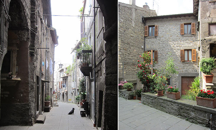 Old Bagnaia is surrounded by a deep ravine on three sides and the only access to it is through the gate in the Bishop's Palace; for this reason it has retained its medieval aspect.