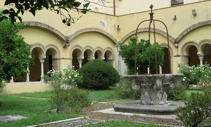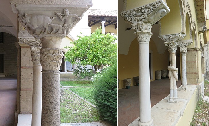 The cloister was built by using some ancient columns and others which were made at the time. These columns were small in size and in many other medieval cloisters (e.g. S. Paolo fuori le Mura and Abbazia di Fossanova) similar columns were used in pairs. In S. Sofia instead a pulvino, a piece in the form of a truncated pyramid and a typical Byzantine architectural element, was utilized to bridge the gap between the size of the columns and that of the arches they supported.