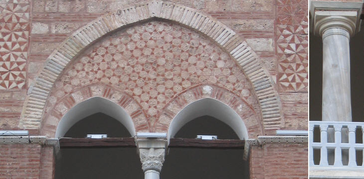 The mosque was badly damaged by the 1855 earthquake, but it was rebuilt according to the original plan. The façade has prompted art historians to suggest that a Byzantine or Italian architect was involved in its design. Columns and capitals come from former Roman/Byzantine buildings.