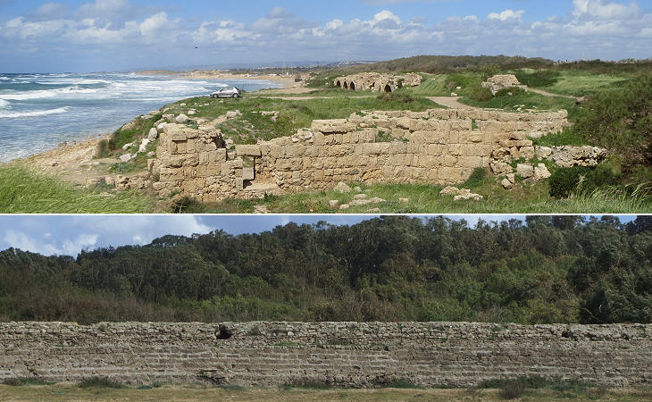 (above) Strato's Tower and Roman aqueduct in the background; (below) Byzantine aqueduct