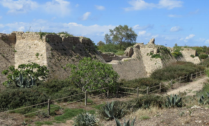 Strato's Tower was the name of a small settlement founded by the Phoenicians. It has been identified north of the medieval walls. The site looks rather abandoned, but it is very evocative with the view of the coastline and the ruins of an aqueduct built by Herod the Great and restored in the IInd century by the Romans. It ran too close to the coast and at one point part of it collapsed into the sea. A second aqueduct was built inland; it still provided Caesarea with water, but it was not that impressive.