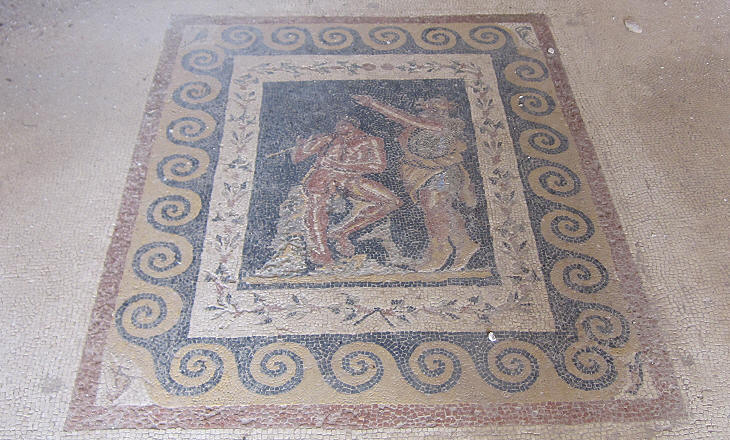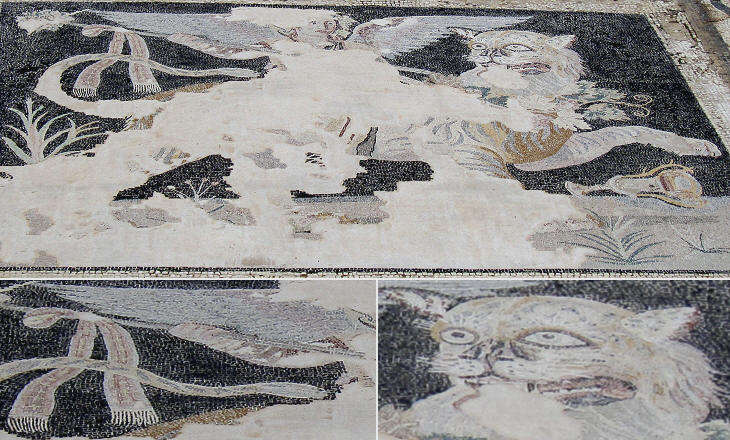 In the area above the Theatre archaeologists found a second house decorated with a mosaic portraying Dionysus; they called it House of the Masks or of the Comedians because of some mosaics showing theatrical masks.
