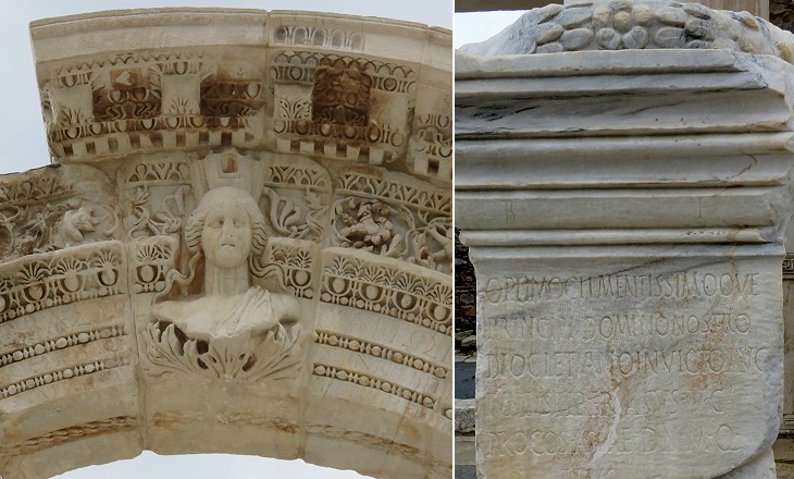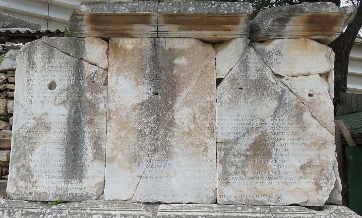 Greek inscription reporting a letter/decree by Emperors Valentinian, Valens and Gratian to Festus, governor of Ephesus (opposite Hadrian's Temple, an identical Latin inscription stands next to the Greek one)