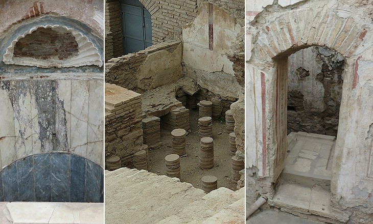 Terrace Houses: (left) a fountain; (centre) heating system of private baths; (right) a latrine