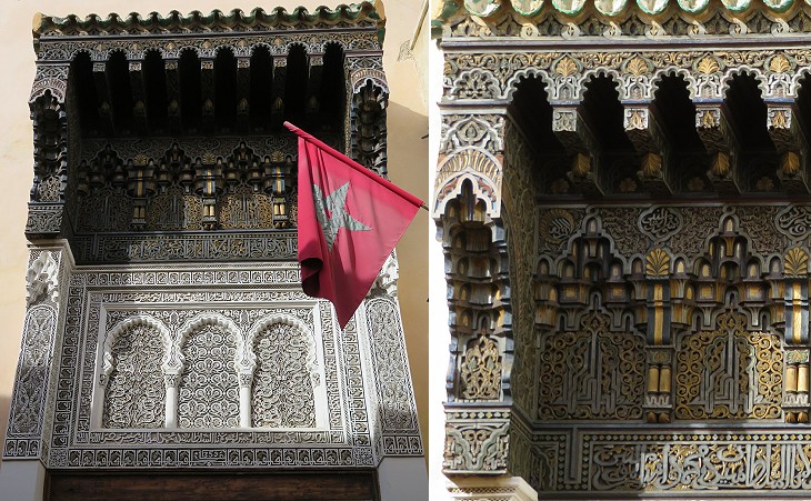 The architectural and decorative patterns established during the Almohad and Marinid rule did not change in a remarkable way in the following centuries because the portal of this inn, which was built in 1711, is very similar to those of the Great Mosque and of the Marinid medreses.