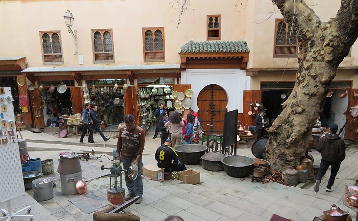 The detailed description of the trades and shops of Fez el-Bali by Leo Africanus could still be useful today because the brass market continues to be situated to the east of the Great Mosque.