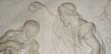 | relief; bas-relief relief is a branch of sculpture where figures project from a flat surface. a bas-relief is a relief where figures project less than half their true depth. It is adopted for works which are seen at a short distance. For example the reliefs of Colonna Traiana, which were seen from buildings (now lost) next to the column have a lower projection than the reliefs of Colonna Antonina which were seen from the street level. The image shows a bas-relief in the baptistery chapel of S. Maria del Popolo in Rome. | ![]() |