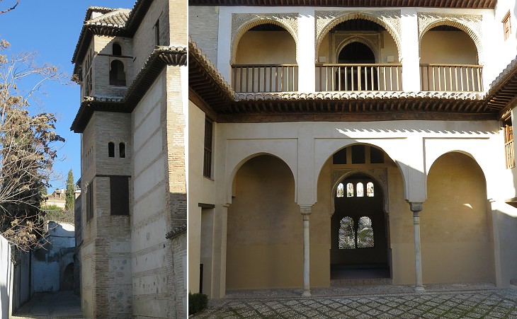 Dar al Horra or Casa de la Sultana at Albaicin; (left) exterior; (right) courtyard
