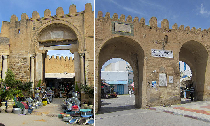 Bab el-Khoukha or Gate of Sousse or New Gate: (left) external gate; (right) internal gate