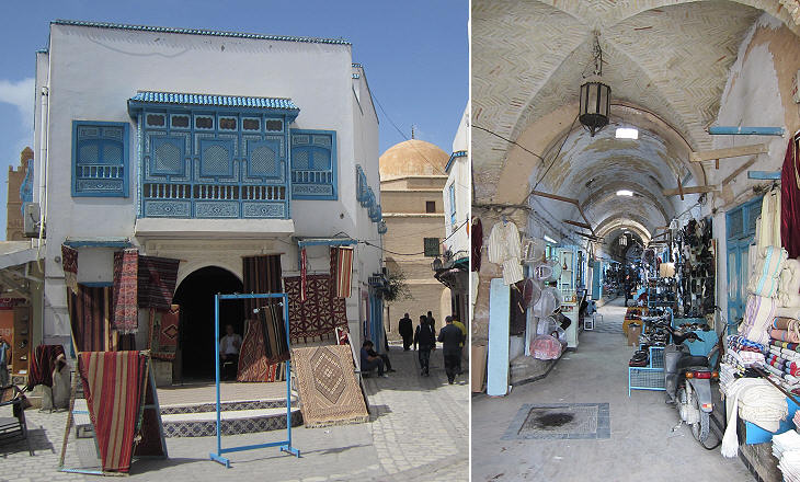 (left) A carpet shop near Bir Barouta; (right) one of the souks of the main market area