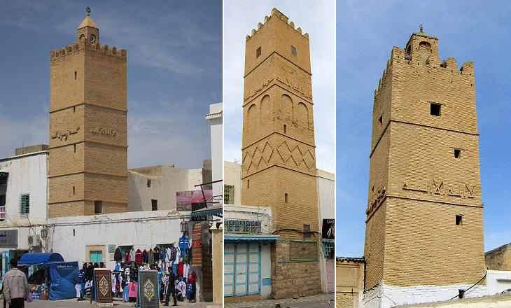Most of the minarets of Kairoaun resemble that of the Great Mosque and the towers of many Italian medieval towns (or Torri de' Capocci in Rome). It is possible that they were so designed to be used as fortifications in case enemies managed to enter the town. They have been decorated with bricks which form inscriptions praising God.