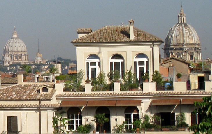 in the Heart of the CityThe skyline of Rome is characterized by domes, chiefly by the dome of S. Pietro, which was completed towards the end of the XVIth century. The desire to admire the new magnificent dome and more in general to have a view over Rome led the richest families to build a little loggia on the roof of their palaces to have their little private belvedere. The loggias were open and they were used in the evening in the summer season, when the western breeze (the ponentino) eased the heat.
