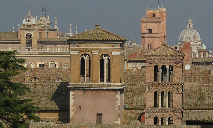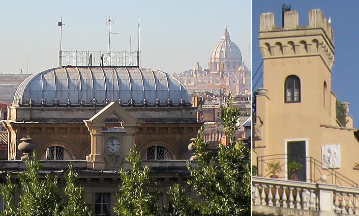 The loggias of the palaces built on the top of the hills have a particularly fine view over the monuments of Rome. The loggia of Palazzo del Quirinale is called il Torrino (the little tower) and it is closed. Villa Medici is topped by two aerial loggias. Both Palazzo del Quirinale and Villa Medici have a particularly fine view over the dome of S. Pietro, especially when the sun goes down behind it.