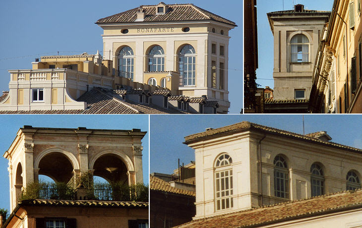 XIXth century additions: (left) near Via Margutta; (right) Palazzo Massimo di Rignano
