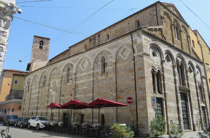 The name indicates that the church was built at the limit of the urban area (orto, kitchen garden). The façade is another fine example of Pisan Romanesque style, with five blind arches decorated with rhombi and round windows. The brick bell tower was built in 1595 on the remains of the original one. The church is deconsecrated and it now belongs to the University of Pisa.