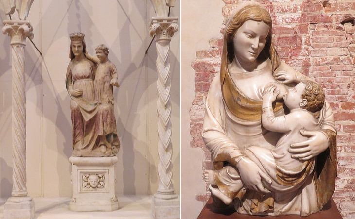 Museo Nazionale di S. Matteo: (left) Madonna from the Monument to Count Bonifazio della Gherardesca by Lupo di Francesco (from S. Francesco); (right) Madonna del Latte (Nursing Madonna) from the interior of S. Maria della Spina