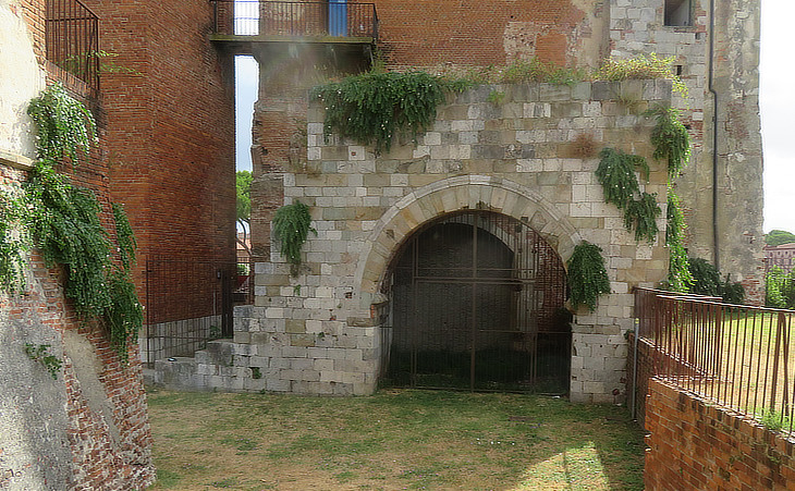 Ancient Porta Degazia or Legazia or "a Mare" inside the Citadel; it was the gate where the merchandise of the Pisan ships was unloaded; Degazia is perhaps an old term for Dogana (Customs-house); some chronicles refer to it as Legazia, an ecclesiastical title (Legatus) of the Archbishops of Pisa because of their jurisdiction over parts of Sardinia
