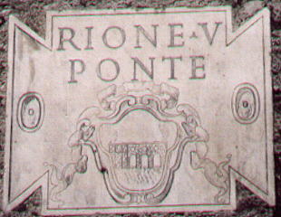 The coat of arms of Rione Ponte shows a bridge with a statue at each end, a reference to the statues of St. Peter and St Paul