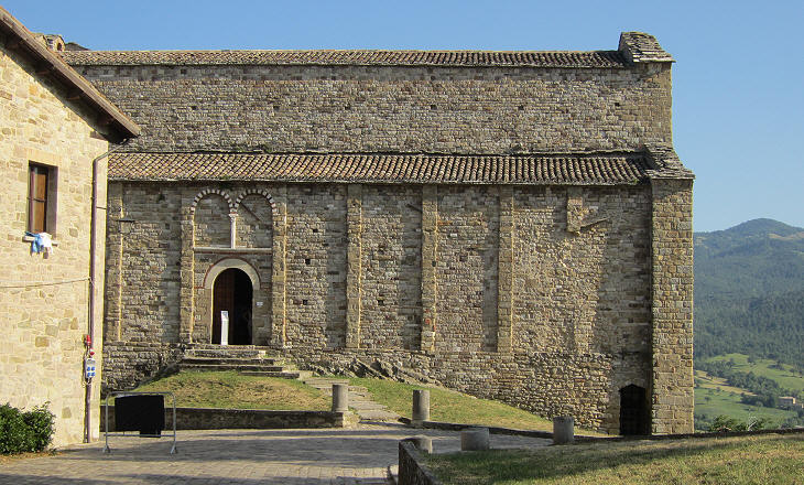 Today San Leo is best known for the imposing fortress which was built at the top of the mountain in the XVth century, but the very tiny town, a handful of buildings, had a great importance from a religious viewpoint because it was the bishopric see of the whole of Montefeltro since the VIIth century. Today the diocese includes the territory of the Republic of San Marino and it has three cathedrals (in San Leo, in San Marino and in Pennabilli, in the upper Marecchia valley).
