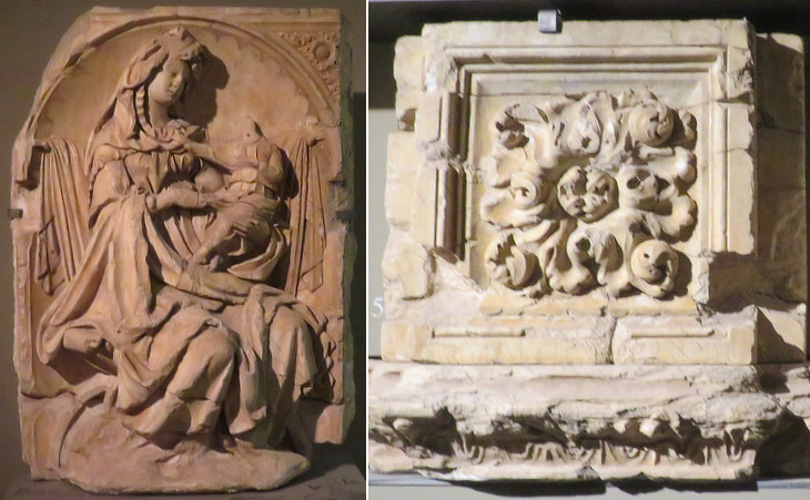 Fonte Gaia: (left) Madonna and Child; (right) decorative relief