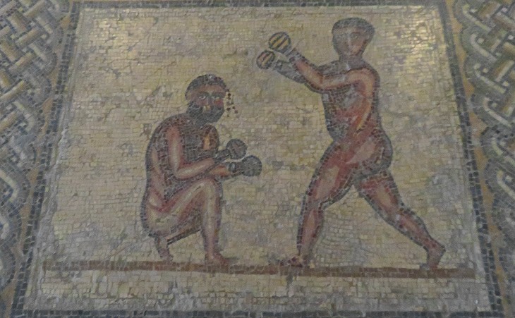Museum of Bardo: floor mosaic depicting "pancratiasts" found at baths at Thuburbo