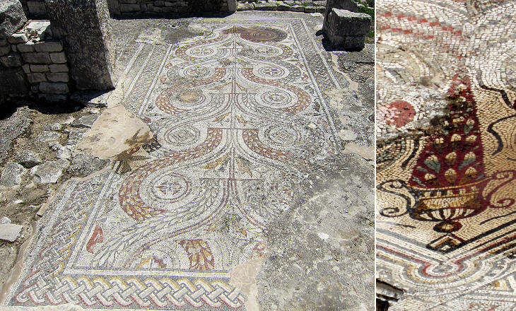 The mosaics found in more recent periods were left in place, but owing to the lack of appropriate shelters, they are at risk of disappearing too.