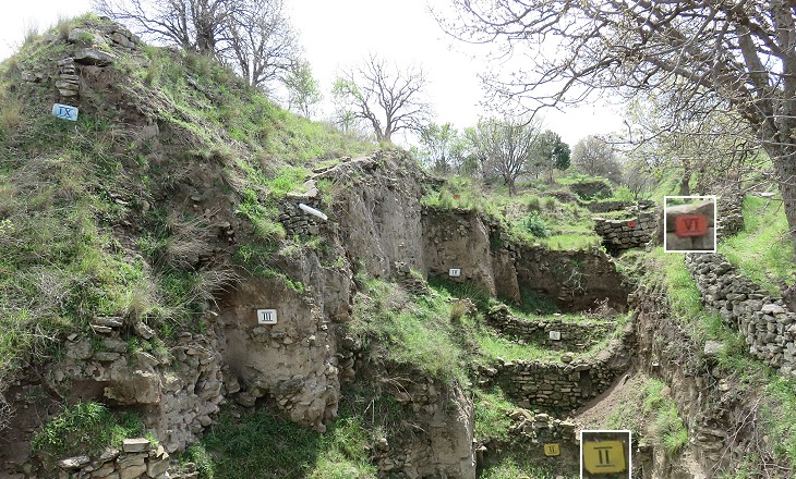 Section of the ground showing the levels of the settlements which were founded on the hill