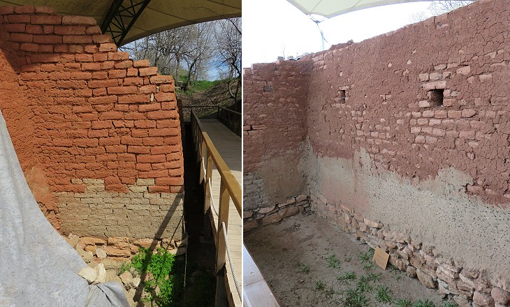 Excavations on the eastern side of the hill have unearthed thick walls which are consistent with the idea we have of those of Homer's Troy. They had projecting towers that protected gates.
