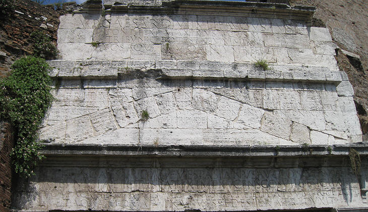 The three conduits of the aqueducts above the arch with the inscriptions celebrating improvements to them which were made by Augustus (above), Caracalla (middle) and Titus (below). Similar inscriptions can be seen at Porta Maggiore