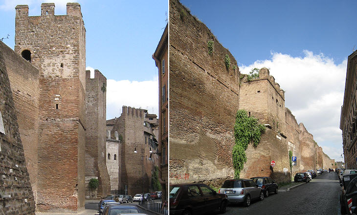 High towers which were rebuilt by Pope Nicholas V characterize this section of the walls, but there are coats of arms showing restorations and improvements made at a later time.