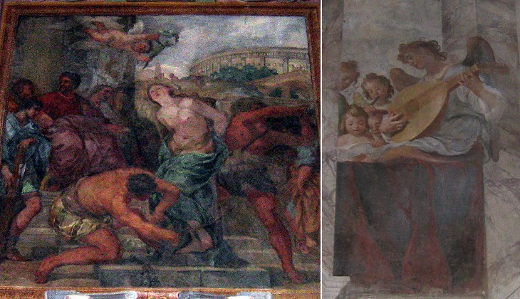 (left) Fresco by Pietro da Cortona depicting the martyrdom of St. Vivian; (right) fresco by Agostino Ciampelli