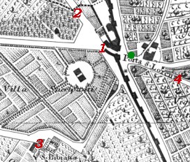 1) Porta S. Lorenzo; 2) Arco Trionfale di Papa Sisto V; 3) S. Bibiana; 4) Via Collatina.