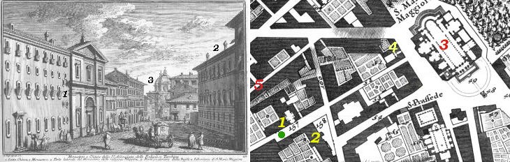 Most of the buildings around S. Maria Maggiore were erected in the late XIXth century. Two old palaces on the southern side of the basilica survived, although their appearance was modified in 1873 when the street level was lowered.