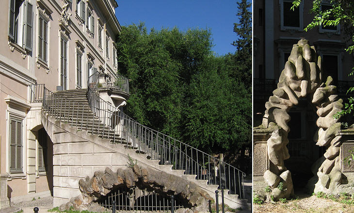 The small casino of Villa Astalli was built in the second half of the XVIIth century; at that time it was essentially a farmhouse, although it was decorated with stucco busts and friezes. Today it is located near one of the busiest crossroads of Rome. A storey has been added to the original building. The Astalli were a prominent Roman family in the Middle Ages, but they lost power and wealth until Pope Innocent X chose Cardinal Camillo Astalli as one of his closest advisors. He was a relative of Donna Olimpia Maidalchini, sister-in-law of the Pope. The Astalli owned the fiefdom of Sambuci.